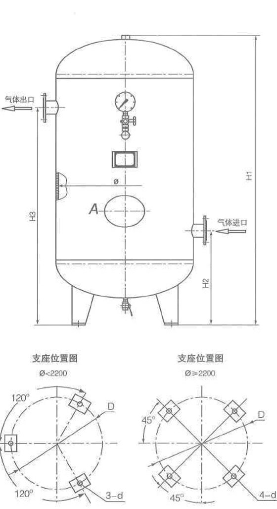 空氣罐(壓力容器),又名壓縮空氣儲(chǔ)氣罐,是專門用于儲(chǔ)存壓縮空氣的壓力容器,主要用于存氣緩沖,同時(shí)起穩(wěn)定系統(tǒng)壓力的作用,避免空壓機(jī)頻繁加卸載和除掉大部分的液態(tài)水。